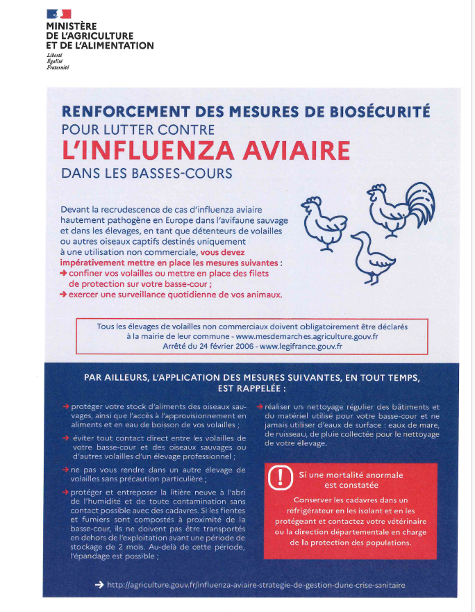 Renforcement des mesures de biosécurité pour lutter contre l’influenza aviaire dans les basses-cours