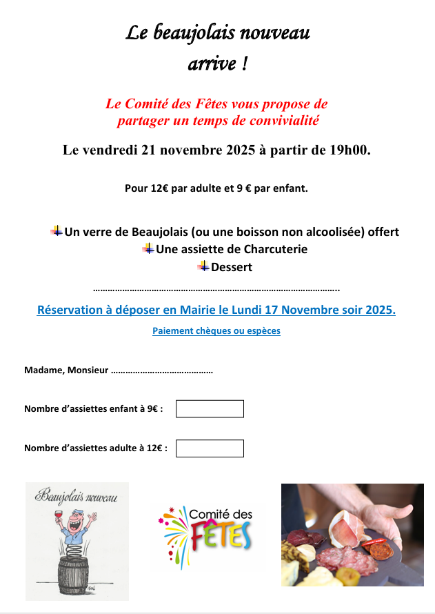 Soirée Beaujolais organisée par le Comité des Fêtes le 21 novembre 2025