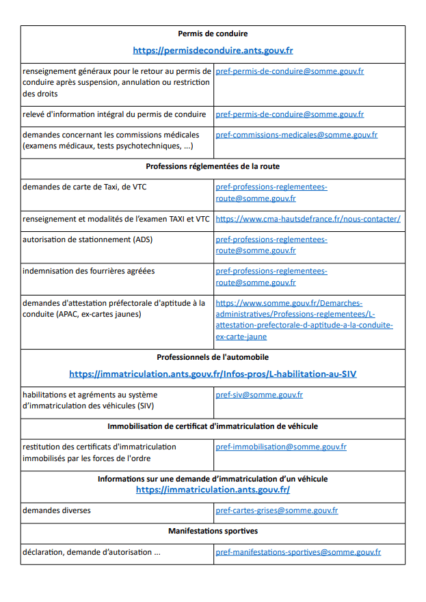 Le bureau des droits à conduire reste joignable par courriel, adressé sur les boîtes mail dédiées en fonction des sujets détaillés dans le tableau du document ci-joint. Chaque demande doit :